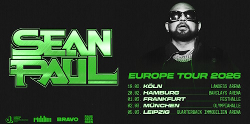 Mit unzähligen Hits und Tourneen in über 120 Ländern gilt Sean Paul als Jamaikas absoluter Top-Musikexport und als größter Weltstar,den die „kleine Insel mit dem großen Sound“ bisher hervorgebracht hat. Unter seinem vollständigen Namen Sean Paul Henriques 1973 inKingston geboren, erobert der Dancehall-Deejay (wie ein Mikrofon-Controller in Jamaica genannt wird) seit seinem Durchbruch in denspäten 90er Jahren dank Songs wie „Gimme The Light“, „Get Busy“, „No Lie“, „Temperature“ und „Bring It“ die weltweiten Charts.Als gefragter Kollaborationspartner von Superstars wie Beyoncé, Sia, Dua Lipa, Clean Bandit oder J Balvin prägt Sean Paul seit mehrals zwei Jahrzehnten den globalen Sound zwischen Dancehall, Pop und Reggae wie kein anderer – und begeistert auf der Bühne miteiner Energie, die ihresgleichen sucht. Im Frühjahr 2026 kommt er erneut auf Tournee und macht in Köln, Hamburg, Frankfurt, München,Zürich und Leipzig halt